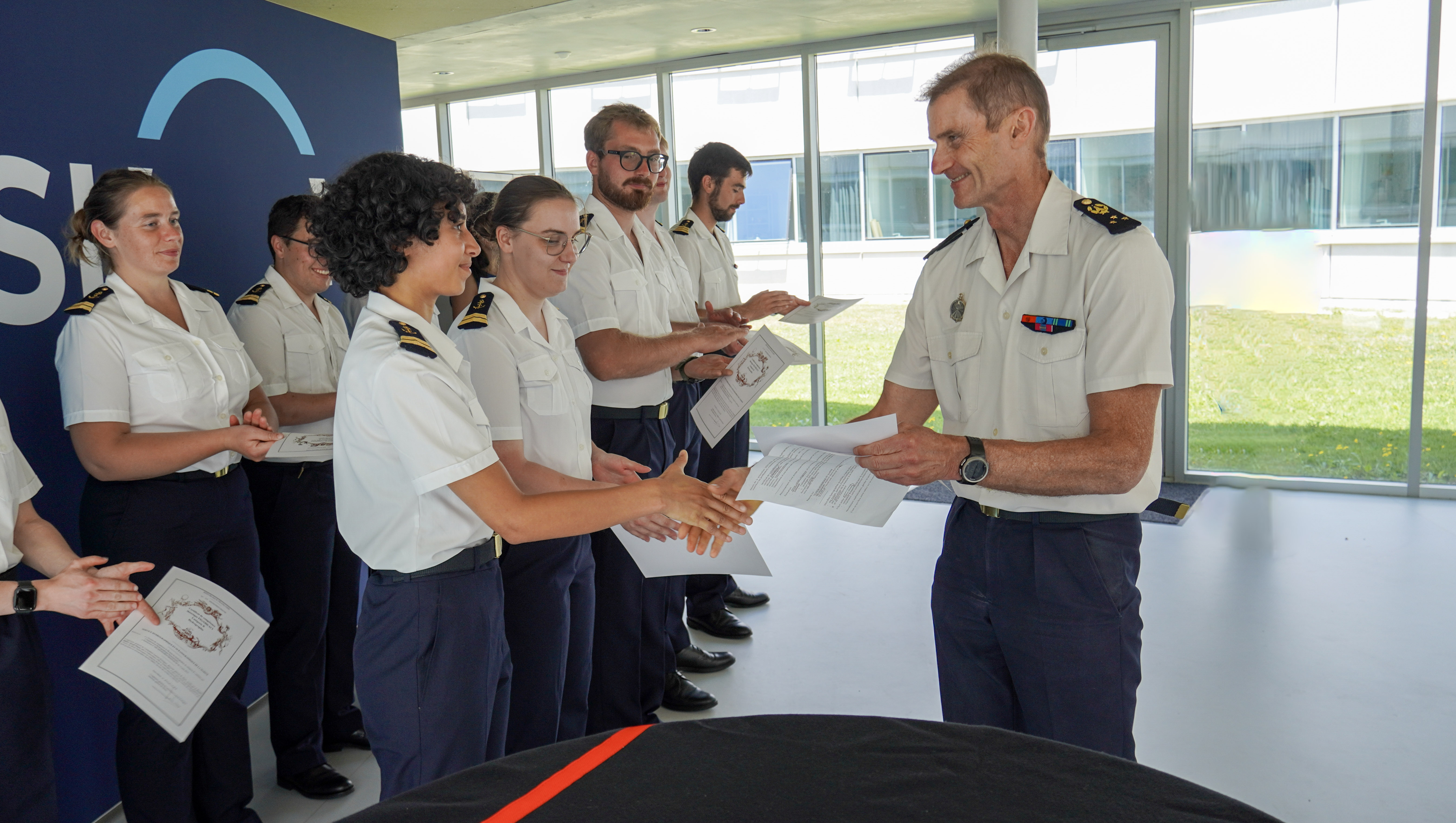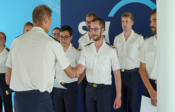 - 9 élèves militaires, qui rejoindront le Groupe hydrographie et océanographie de l’Atlantique (GHOA) à compter du 15 juillet, et embarqueront prochainement sur les bâtiments hydrographiques et océanographiques de la Marine nationale.