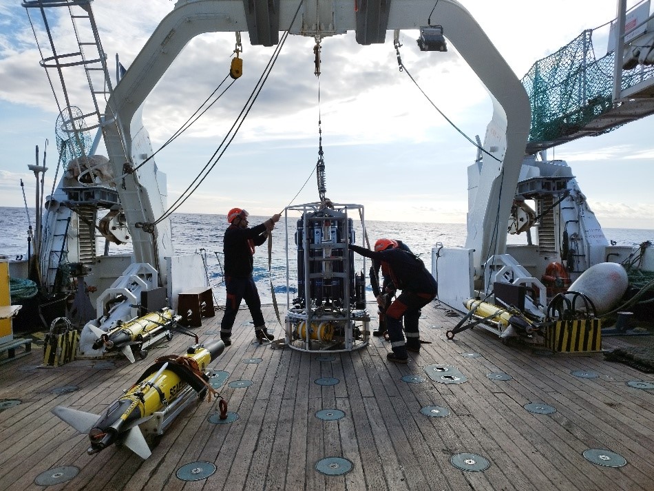 Préparation de la cage bathysonde lors de la campagne BIOLUMOPS - (c) Shom